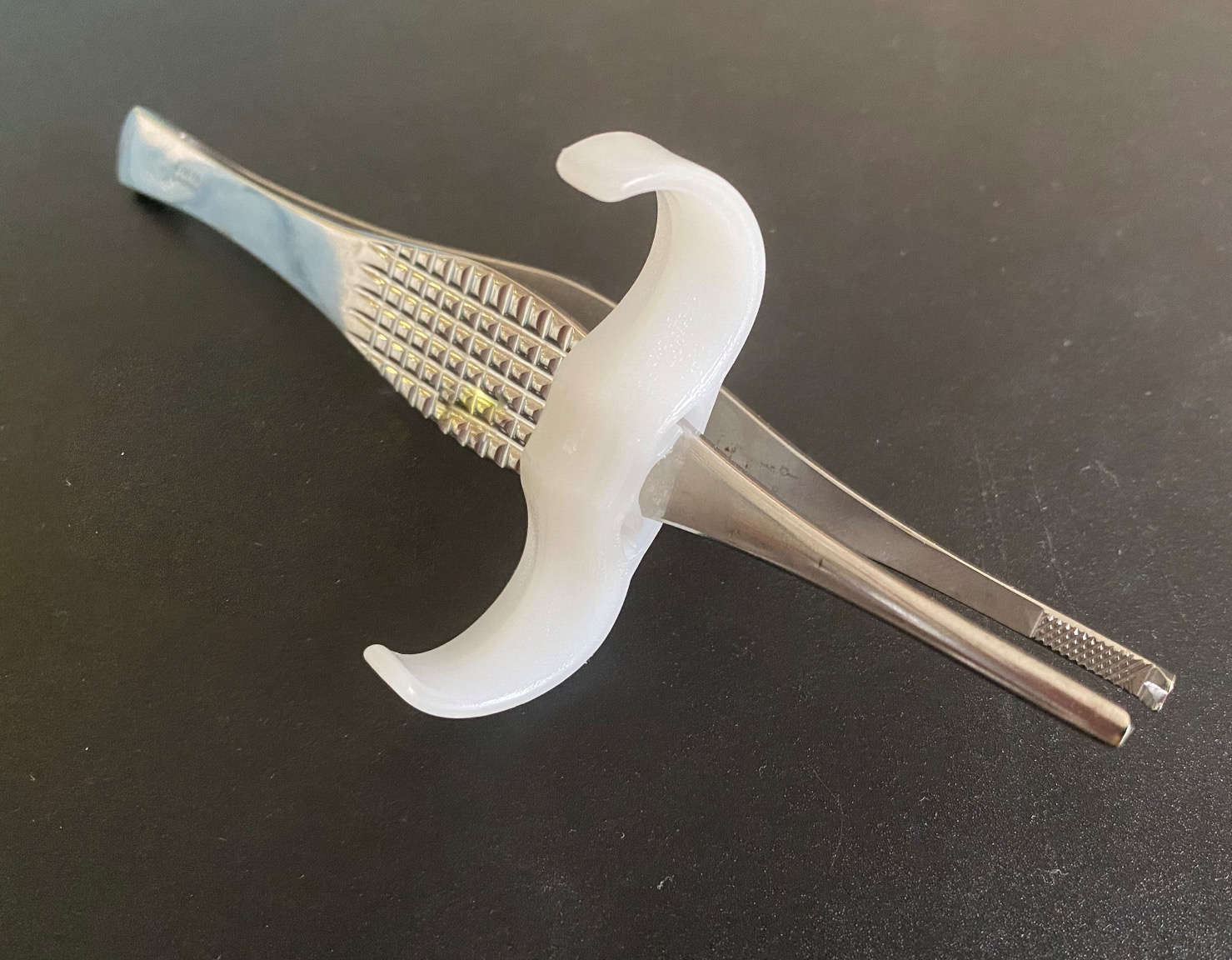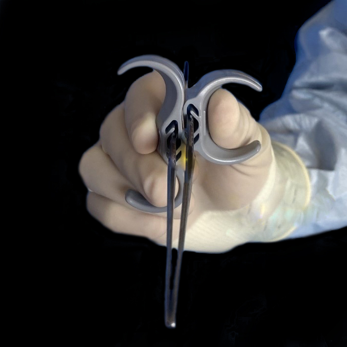 Designed as an ergonomic attachment for commonly used forceps such as DeBakey, Resano, or similar instruments. SurgiWings works with forceps with a minimum handle width of 11.8 mm and minimum thickness of 2.8 mm. It is recommended that surgeons test SurgiWings on the forceps of their preference to confirm acceptable fit and function prior to use during surgery.