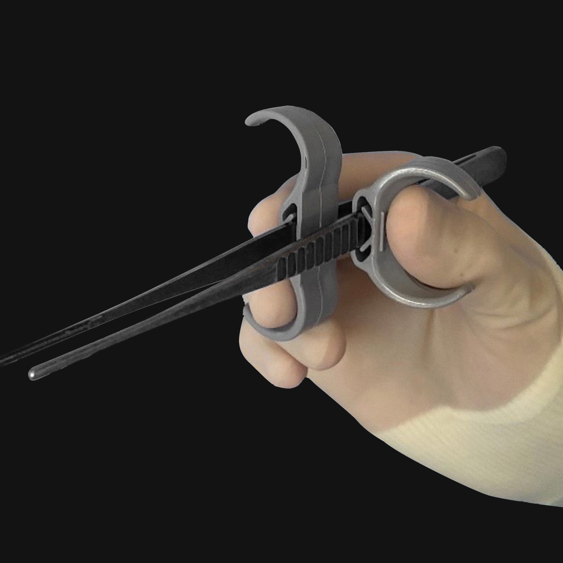 The device consists of “Thumb” and “Fingers” units that are adjustably positioned on the forceps shafts based on surgeons’ preference. The units have attachment slots through which they are slid onto the forceps. The “Thumb” unit is naturally positioned closer to the forceps hinge while the “Fingers” unit is placed closer towards the tips. We suggest that the units to not overlap. Final location of the units on the forceps largely depends on the individual preferences of the surgeon.